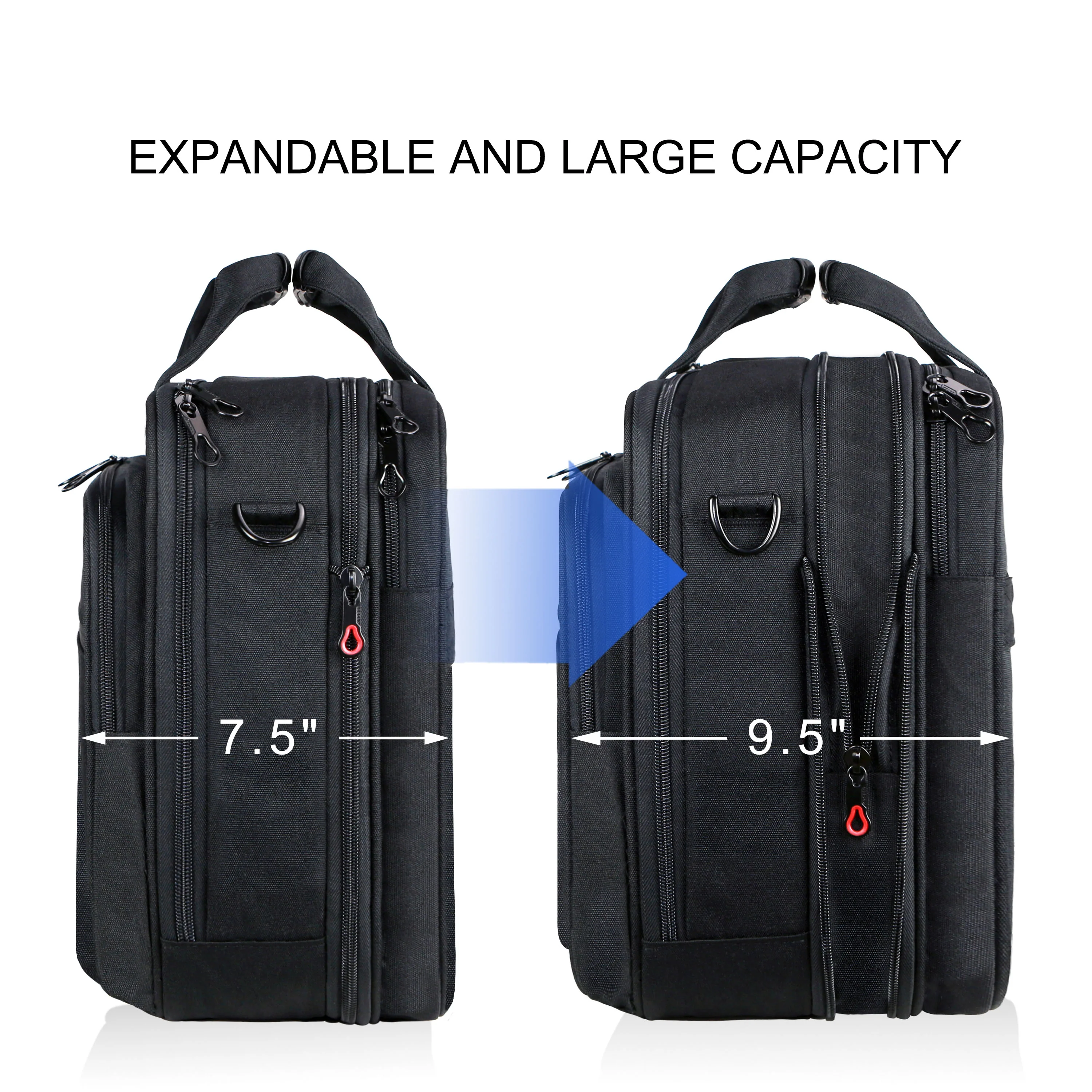 - EXPANDABLE CAPACITY: This laptop briefcase is designed with expandable capacity, the expansion zipper will extend the main compartment space greatly, in which there will be more space for your clothing and files.