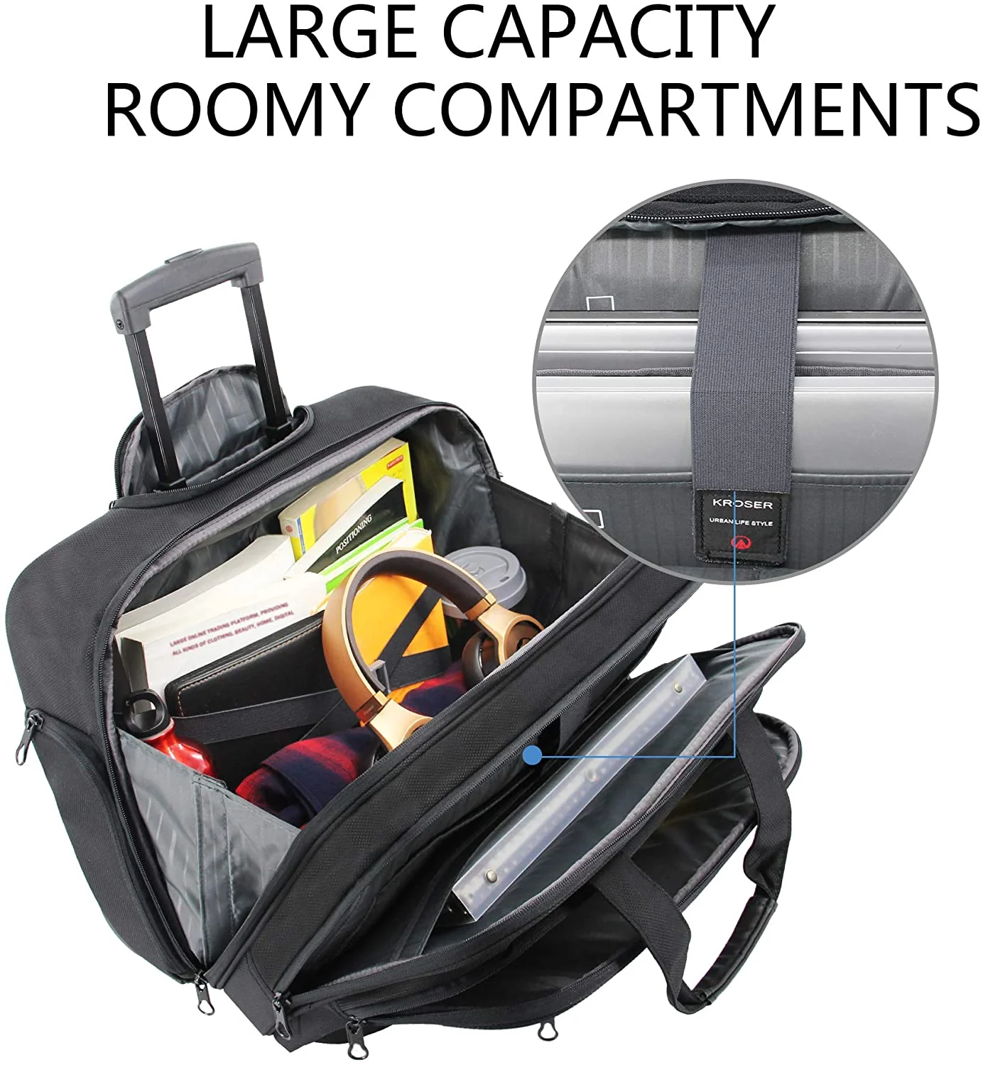 - GREAT CONVENIENCE: A well-knitted “luggage strap” is quite easy to fix the rolling laptop bag on the trolley of your luggage, making your journey and business travelling more convenient.