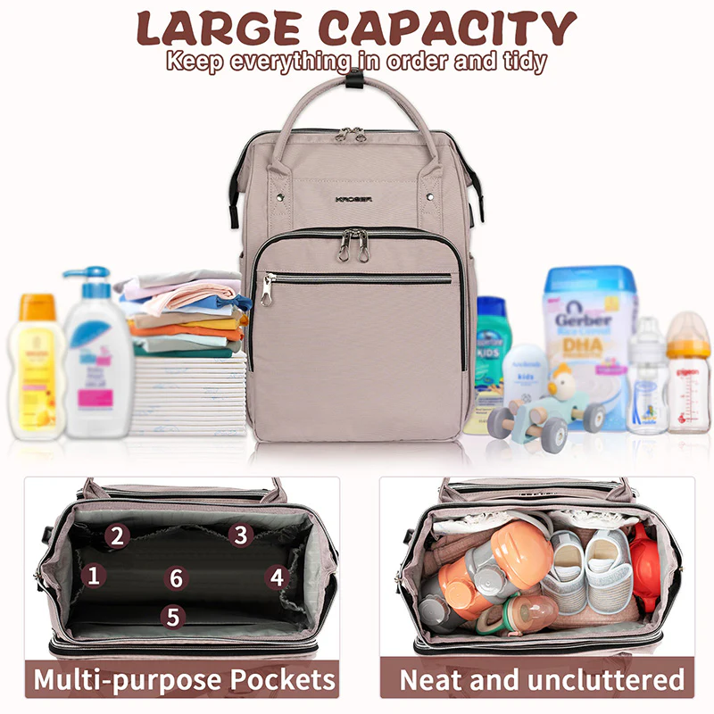 KROSER DIAPER BAG BACKPACK WITH CURTAIN, CHANGING PAD, CONVENIENT FOR MOM